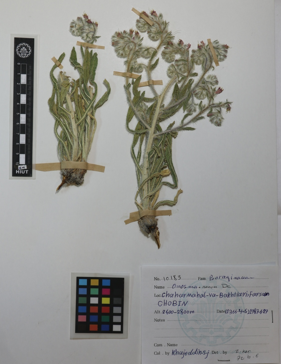 10183 Family : Boraginaceae Herbarium Number : 10183 Species Name : Onosma nanum DC. herbarium date not inserted herbarium alternate herbarium col by herbarium det by herbarium country Iran herbarium province herbarium location not inserted herbarium lat herbarium long herbarium annotations