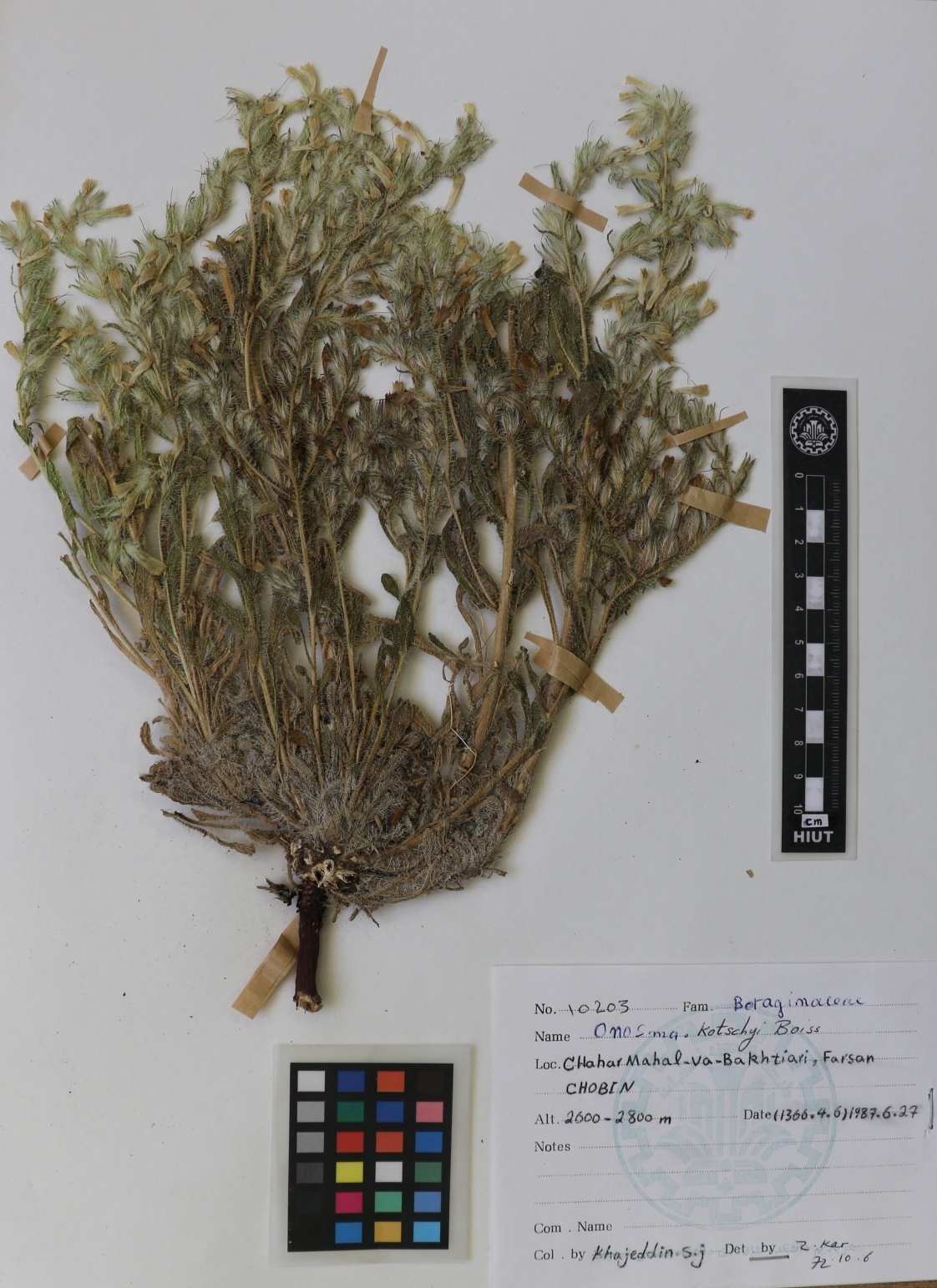 10203 Family : Boraginaceae Herbarium Number : 10203 Species Name : Onosma Kotschyi Boiss. herbarium date not inserted herbarium alternate herbarium col by herbarium det by herbarium country Iran herbarium province herbarium location not inserted herbarium lat herbarium long herbarium annotations