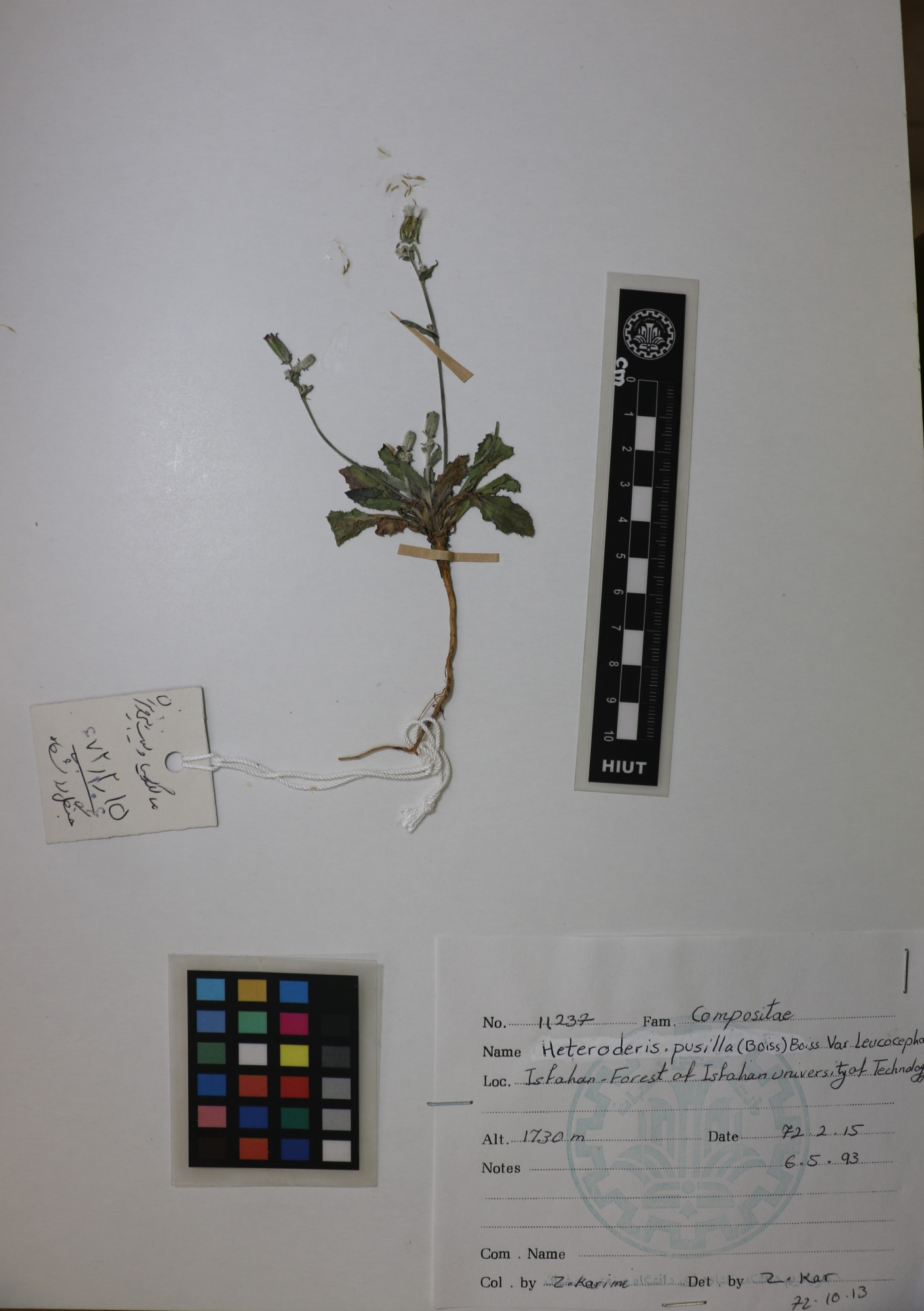 11237 Family : Asteraceae (Compositae) Herbarium Number : 11237 Species Name : Heteroderis pusilla (Boiss)Boiss Leucocephala herbarium date 5/6/1993 herbarium alternate 1730m herbarium col by A.R.Chitsaz herbarium det by Z.Kar herbarium country Iran herbarium province Isfahan herbarium location isfahan Uiniversity of technology herbarium lat herbarium long herbarium annotations
