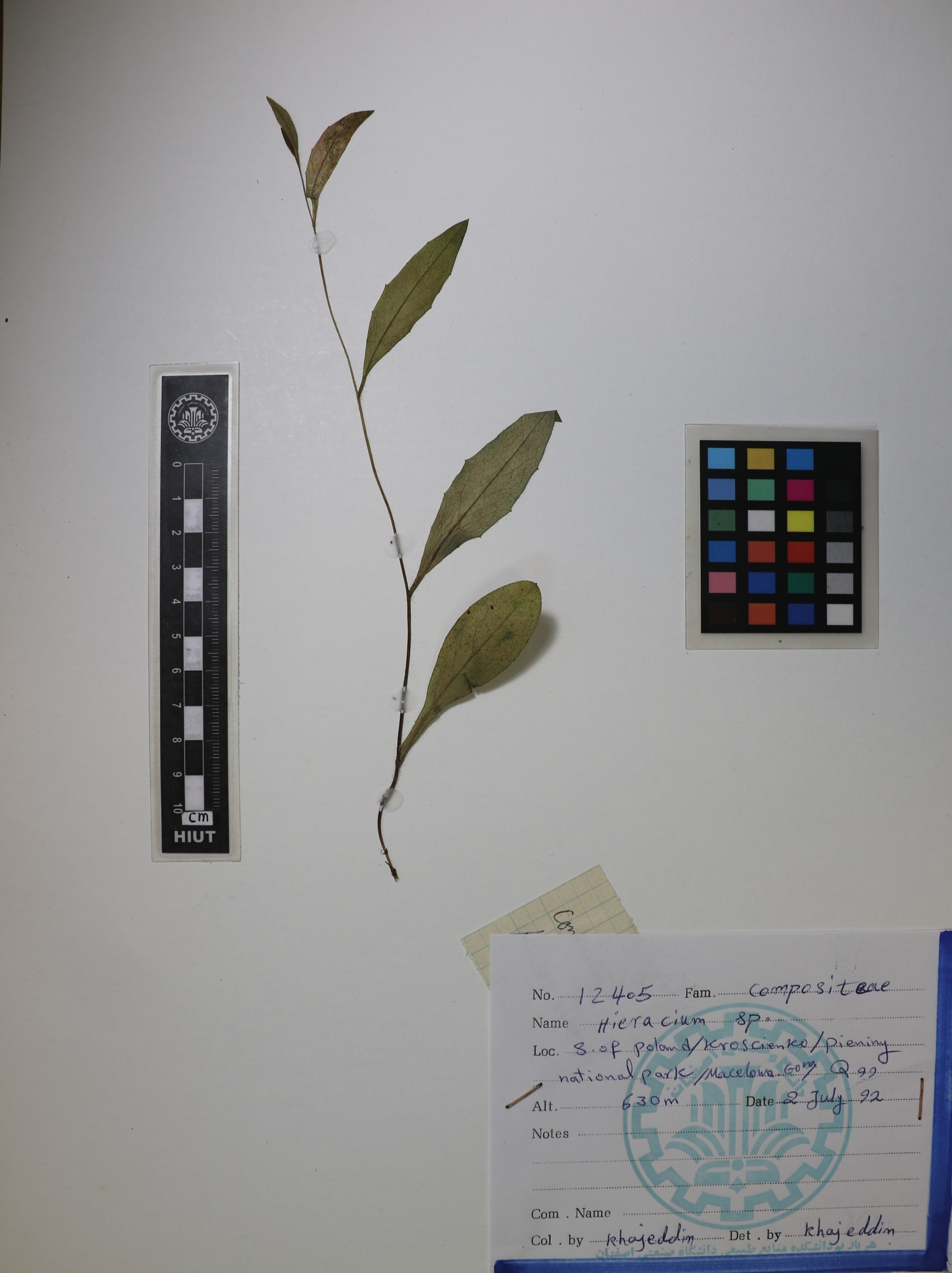 12405 Family : Asteraceae (Compositae) Herbarium Number : 12405 Species Name : Hieracium Sp. herbarium date 7/2/1922 herbarium alternate 630m herbarium col by S.J.Khajeddin herbarium det by Z.Kar herbarium country Iran herbarium province herbarium location not inserted herbarium lat herbarium long herbarium annotations