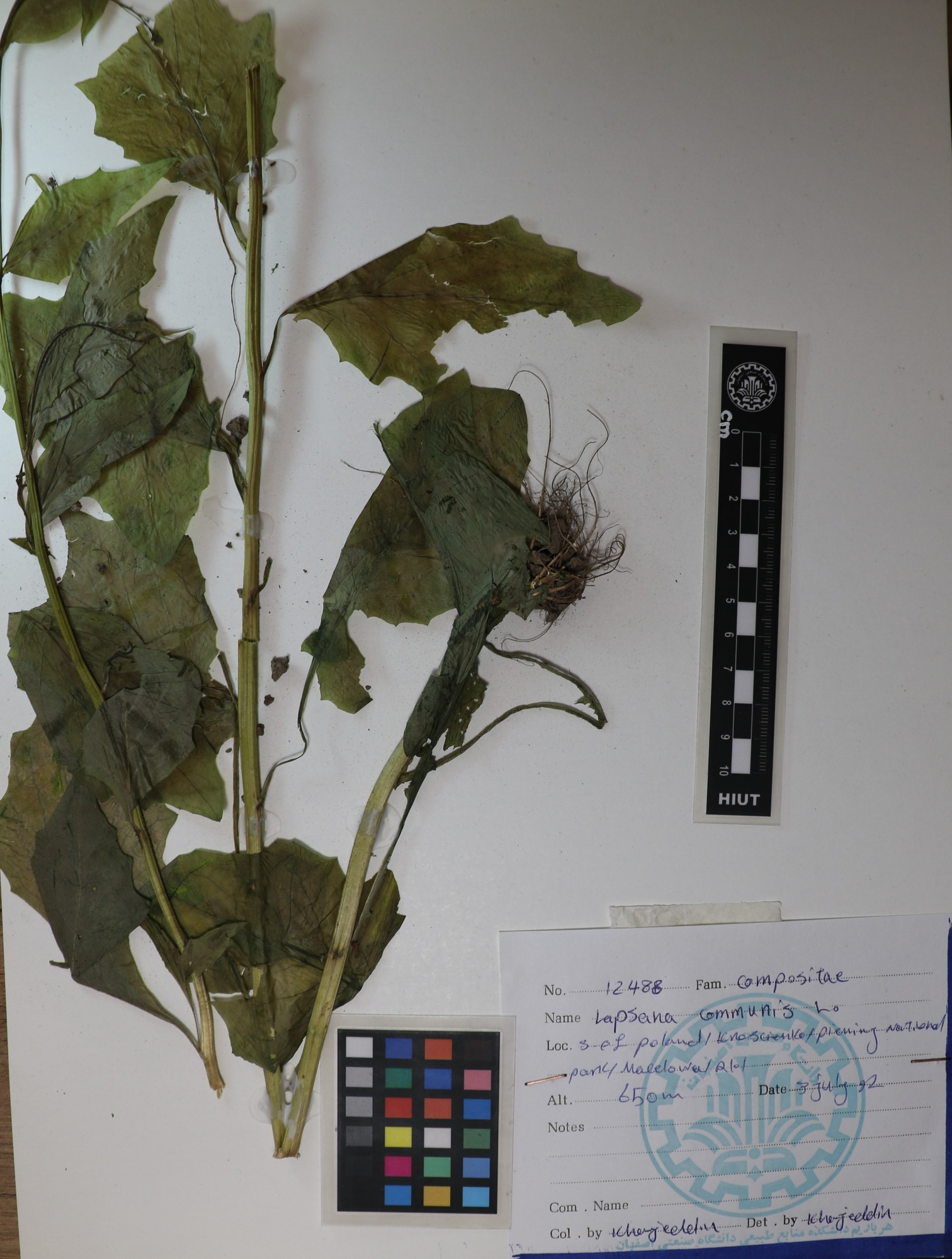 12488 Family : Asteraceae (Compositae) Herbarium Number : 12488 Species Name : Lapsana communis L. herbarium date 7/3/1992 herbarium alternate 650m herbarium col by S.J.Khajeddin herbarium det by Khajeddin herbarium country Iran herbarium province herbarium location not inserted herbarium lat herbarium long herbarium annotations