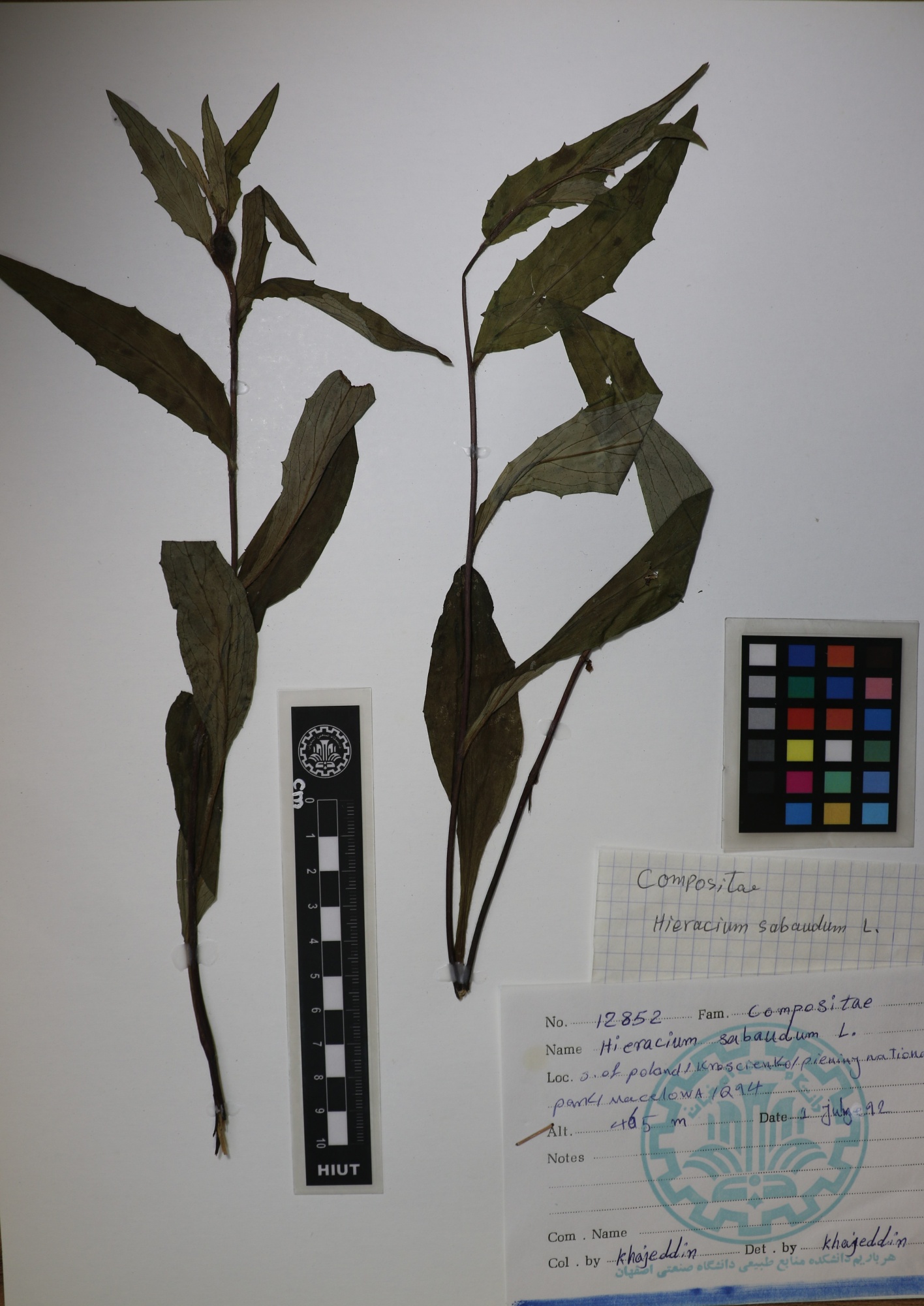 12852 Family : Asteraceae (Compositae) Herbarium Number : 12852 Species Name : Hieracium sabaudum L. herbarium date 7/1/1992 herbarium alternate 465m herbarium col by S.J.Khajeddin herbarium det by S.J.Khajeddin herbarium country Iran herbarium province Isfahan herbarium location not inserted herbarium lat herbarium long herbarium annotations