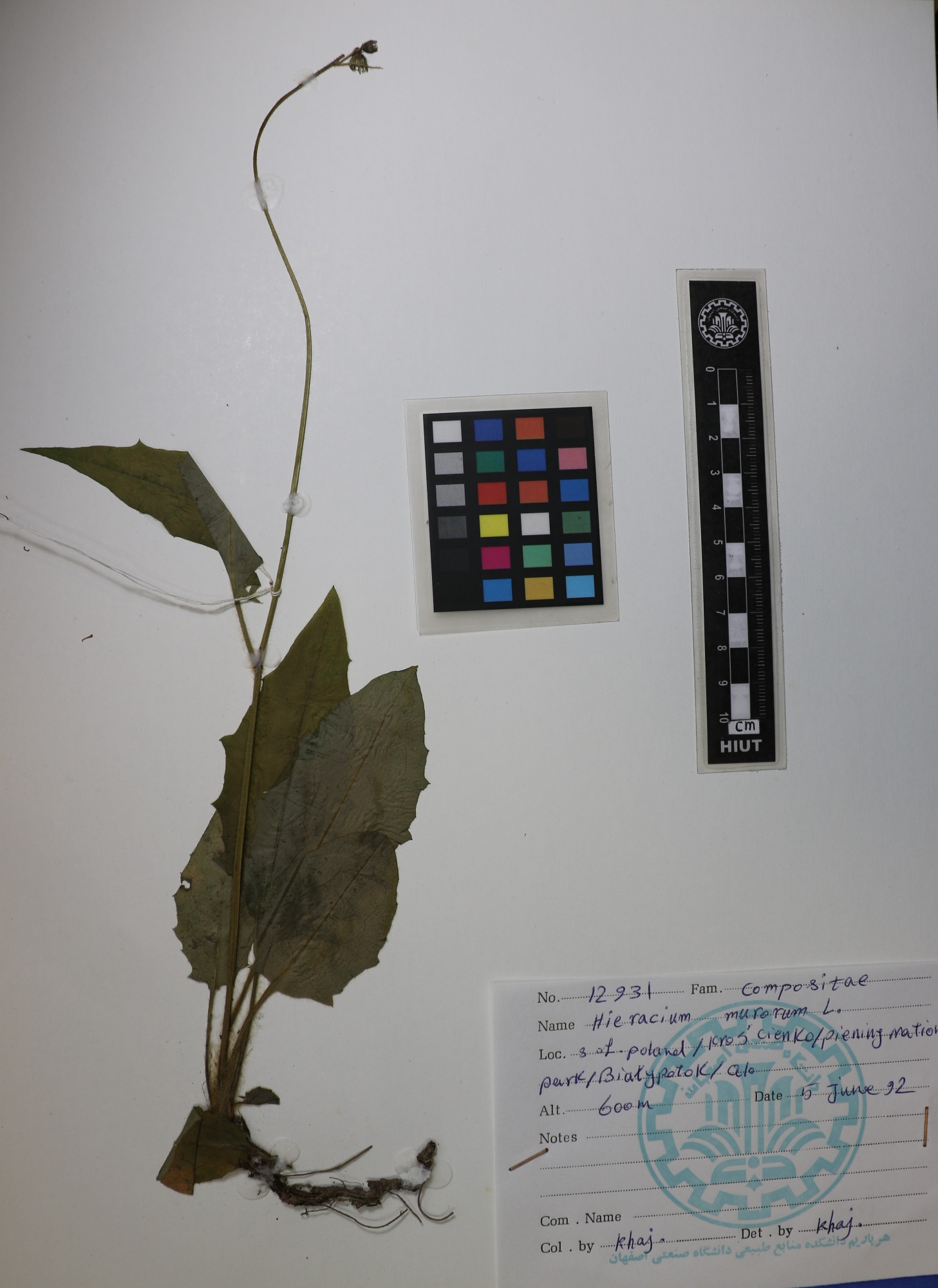 12931 Family : Asteraceae (Compositae) Herbarium Number : 12931 Species Name : Hieracium murorum L. herbarium date 6/5/1992 herbarium alternate 600m herbarium col by S.J.Khajeddin herbarium det by Khajeddin herbarium country Europe herbarium province herbarium location not inserted herbarium lat herbarium long herbarium annotations