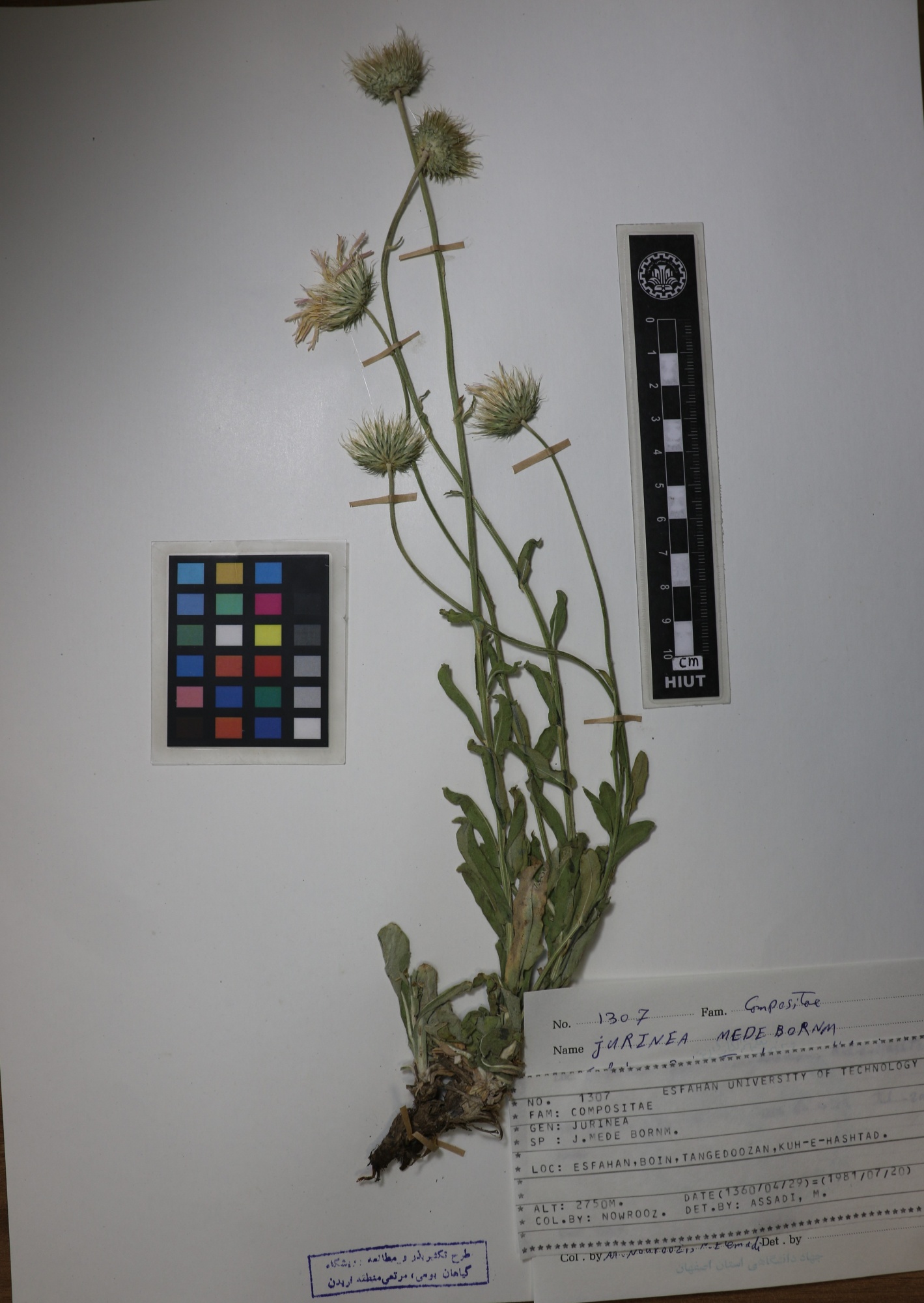 1307 Family : Asteraceae (Compositae) Herbarium Number : 1307 Species Name : Jurinea herbarium date 7/20/1981 herbarium alternate 2750m herbarium col by M.Nowroozi herbarium det by M.Assadi herbarium country Iran herbarium province Isfahan herbarium location Boin.Tangedoozan herbarium lat herbarium long herbarium annotations