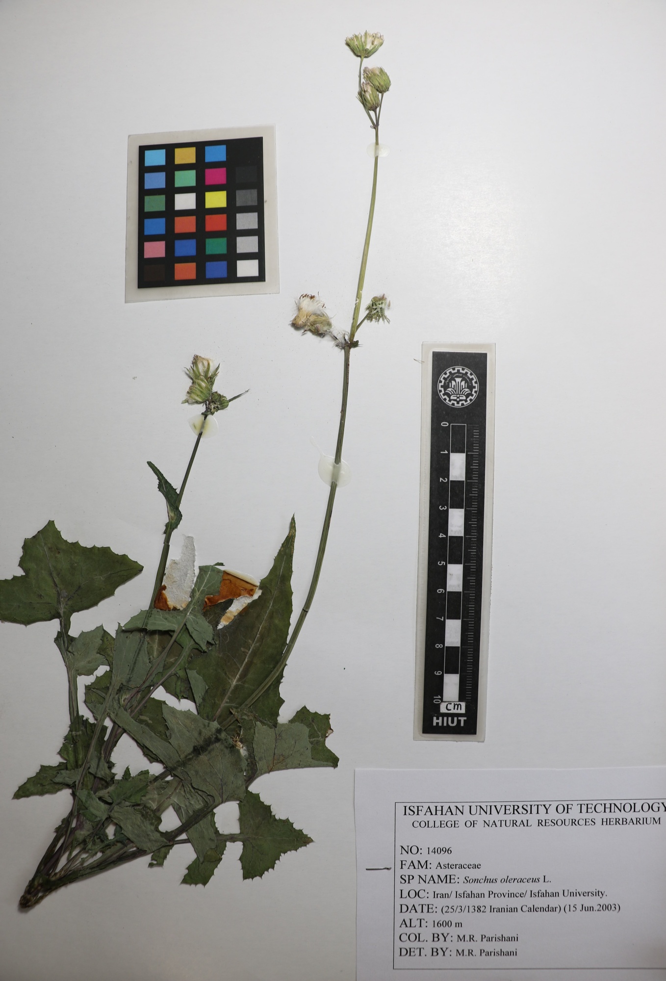 14096 Family : Asteraceae (Compositae) Herbarium Number : 14096 Species Name : Sonchus oleraceus L. herbarium date 6/15/2003 herbarium alternate 1600m herbarium col by M.R.Parishani herbarium det by M.R.Parishani herbarium country Iran herbarium province Isfahan herbarium location Isfahan university of technology herbarium lat herbarium long herbarium annotations