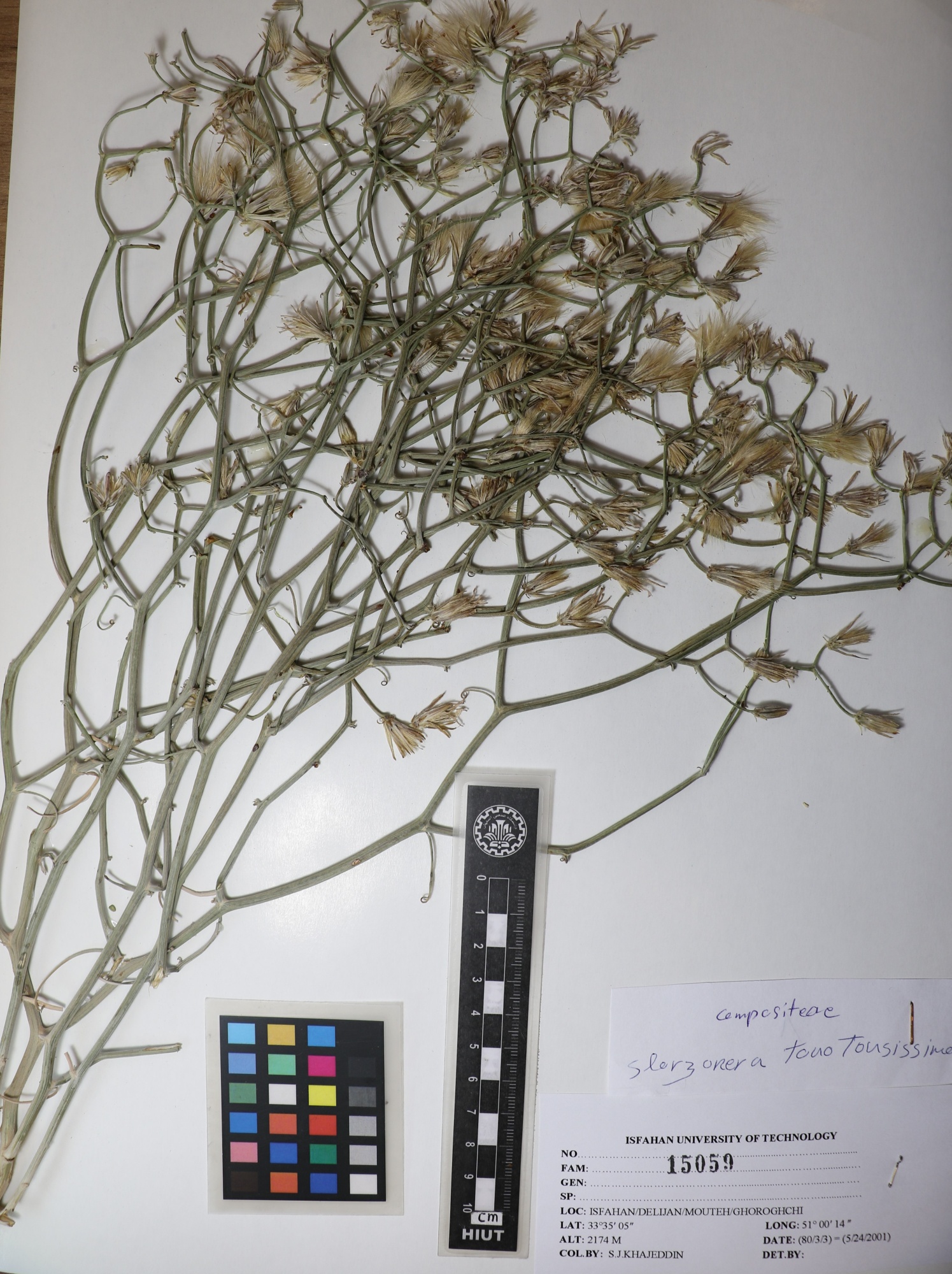 15059 Family : Asteraceae (Compositae) Herbarium Number : 15059 Species Name : Scorzonera tortuosissima herbarium date 5/24/2001 herbarium alternate 2174m herbarium col by S.J.Khajeddin herbarium det by herbarium country Iran herbarium province Isfahan herbarium location Delijan/Mouteh herbarium lat herbarium long herbarium annotations