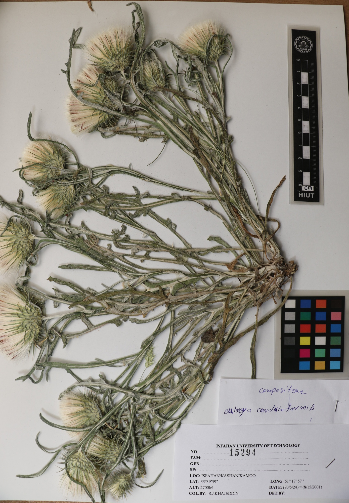 15294 Family : Asteraceae (Compositae) Herbarium Number : 15294 Species Name : Outreya carduiformis herbarium date 8/15/2001 herbarium alternate 2700m herbarium col by S.J.Khajeddin herbarium det by herbarium country Iran herbarium province Isfahan herbarium location Kashan herbarium lat herbarium long herbarium annotations
