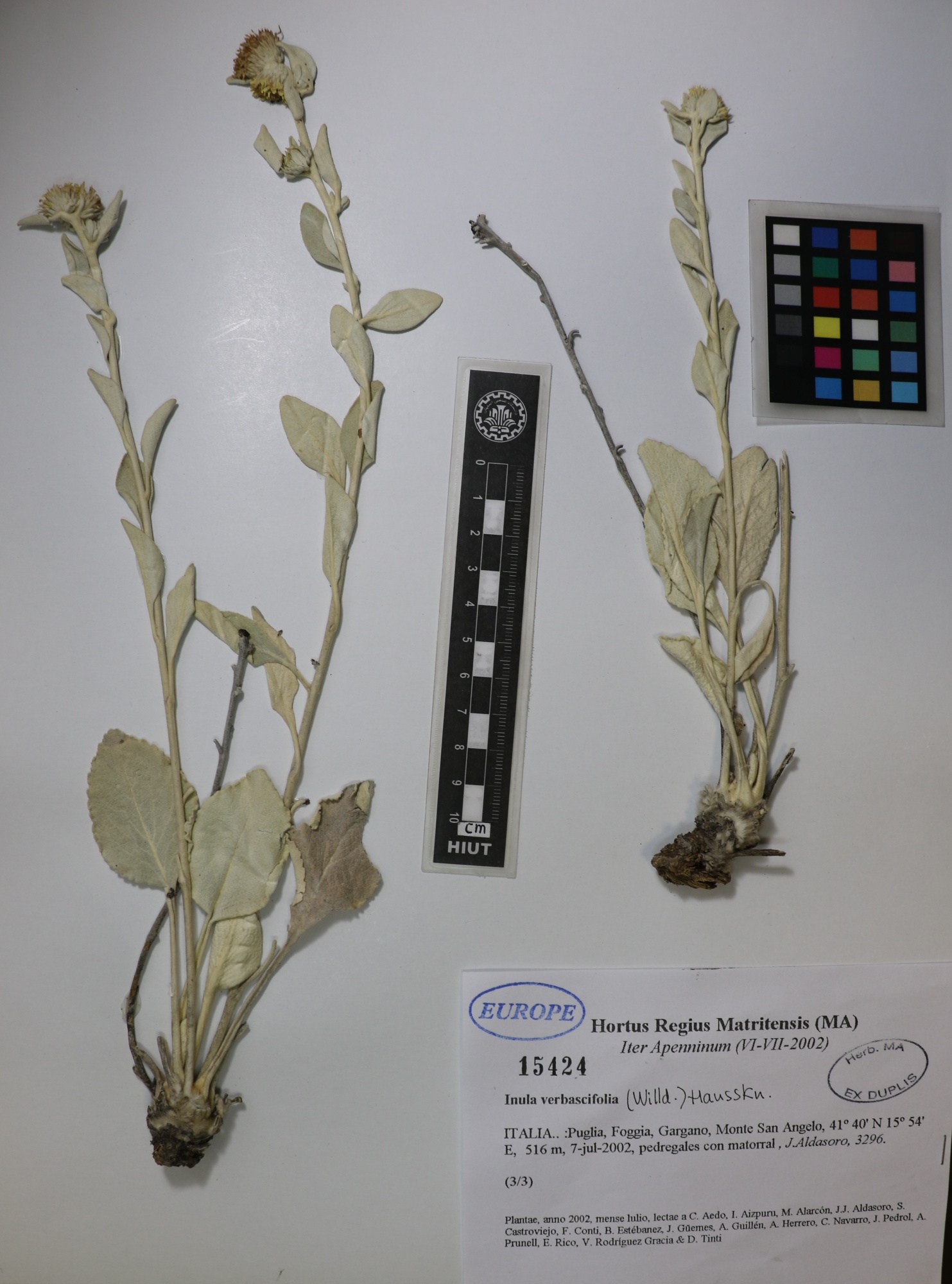 15424 Family : Asteraceae (Compositae) Herbarium Number : 15424 Species Name : Inula verbascifolia (Willd.)Haussku. herbarium date not inserted herbarium alternate herbarium col by herbarium det by herbarium country Europe herbarium province herbarium location not inserted herbarium lat herbarium long herbarium annotations