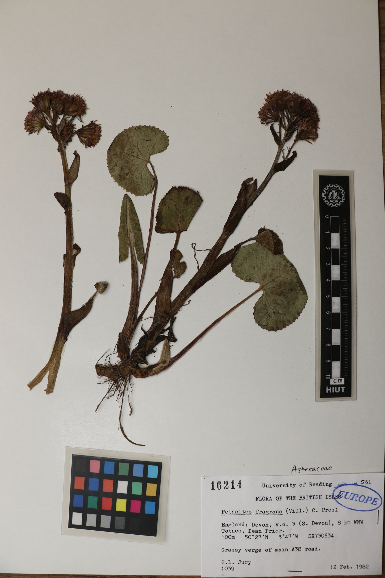 16214 Family : Asteraceae (Compositae) Herbarium Number : 16214 Species Name : Petasites fragrans (Vill.)C.pres1 herbarium date 2/12/1982 herbarium alternate 100m herbarium col by herbarium det by herbarium country Europe herbarium province herbarium location not inserted herbarium lat herbarium long herbarium annotations
