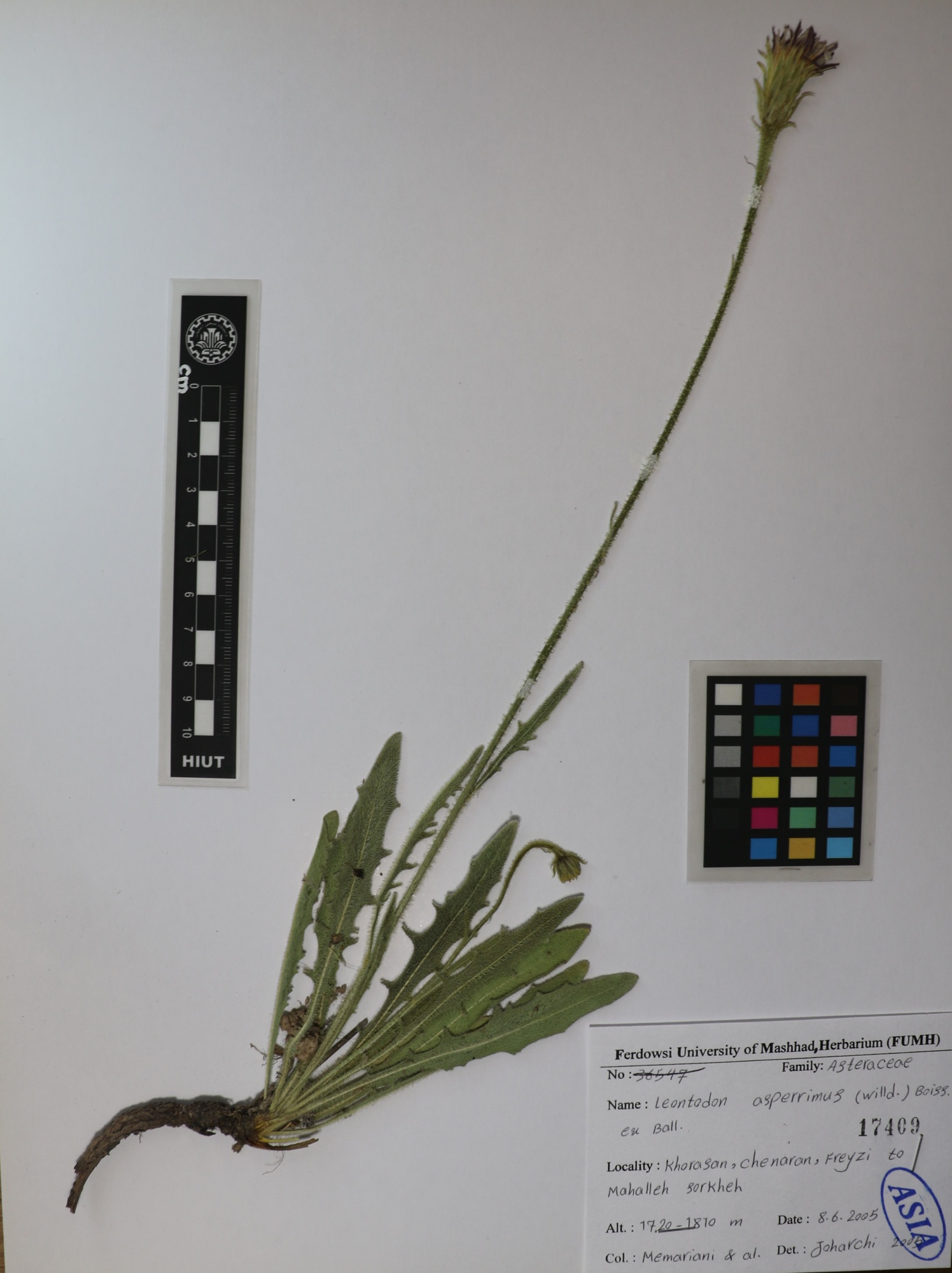 17409 Family : Asteraceae (Compositae) Herbarium Number : 17409 Species Name : Leontodon asperrimus (Willd.)Boiss. herbarium date 6/8/2005 herbarium alternate 1720_1810m herbarium col by Memarian & Al. herbarium det by Joharchi herbarium country Iran herbarium province Khorasan herbarium location Chenaran herbarium lat herbarium long herbarium annotations