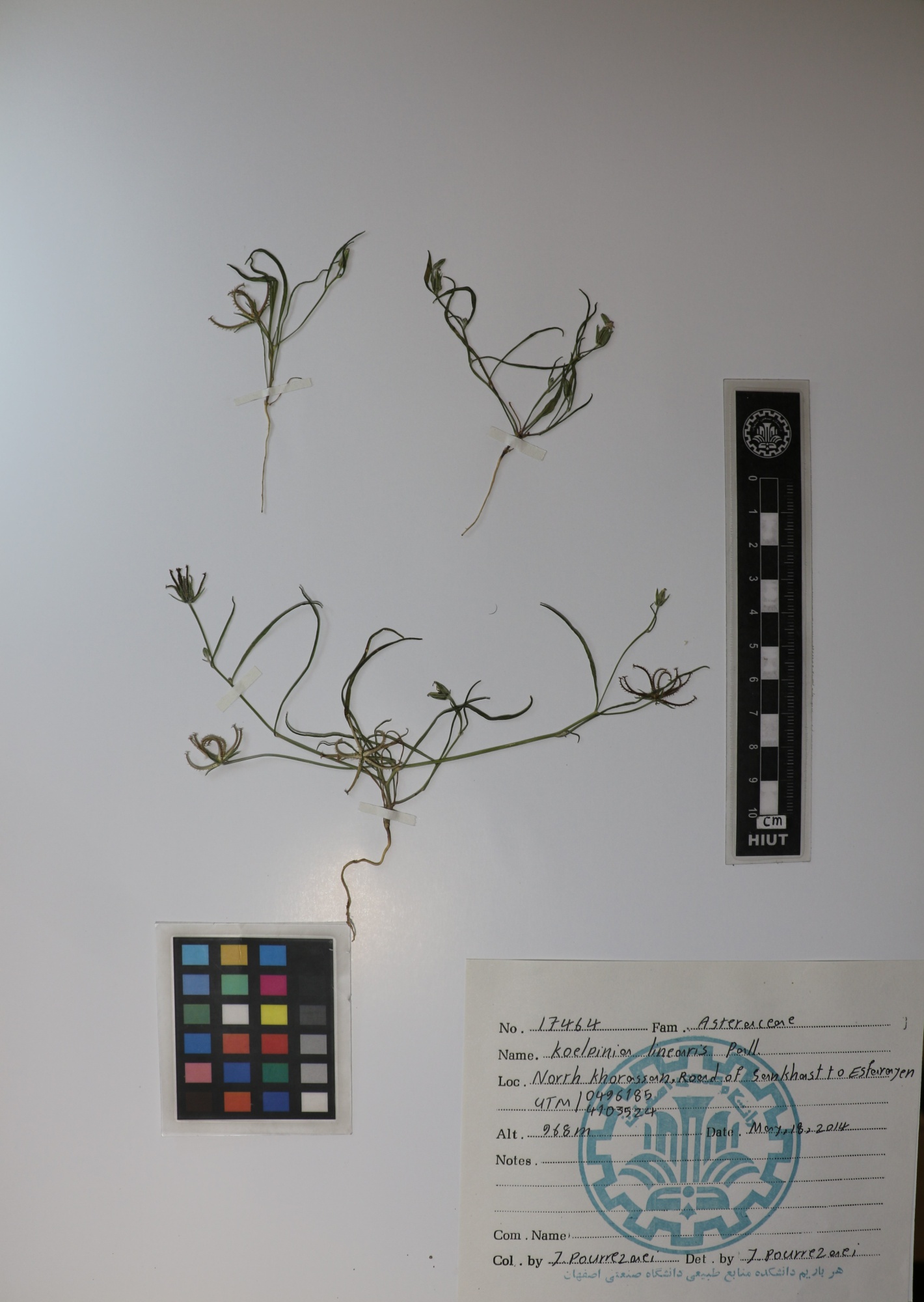 17464 Family : Asteraceae (Compositae) Herbarium Number : 17464 Species Name : Koelpinia linearis Pall. herbarium date 3/18/2014 herbarium alternate 968m herbarium col by Memarian & Al. herbarium det by Joharchi herbarium country Iran herbarium province North Khorasan herbarium location Road of sankhast herbarium lat herbarium long herbarium annotations