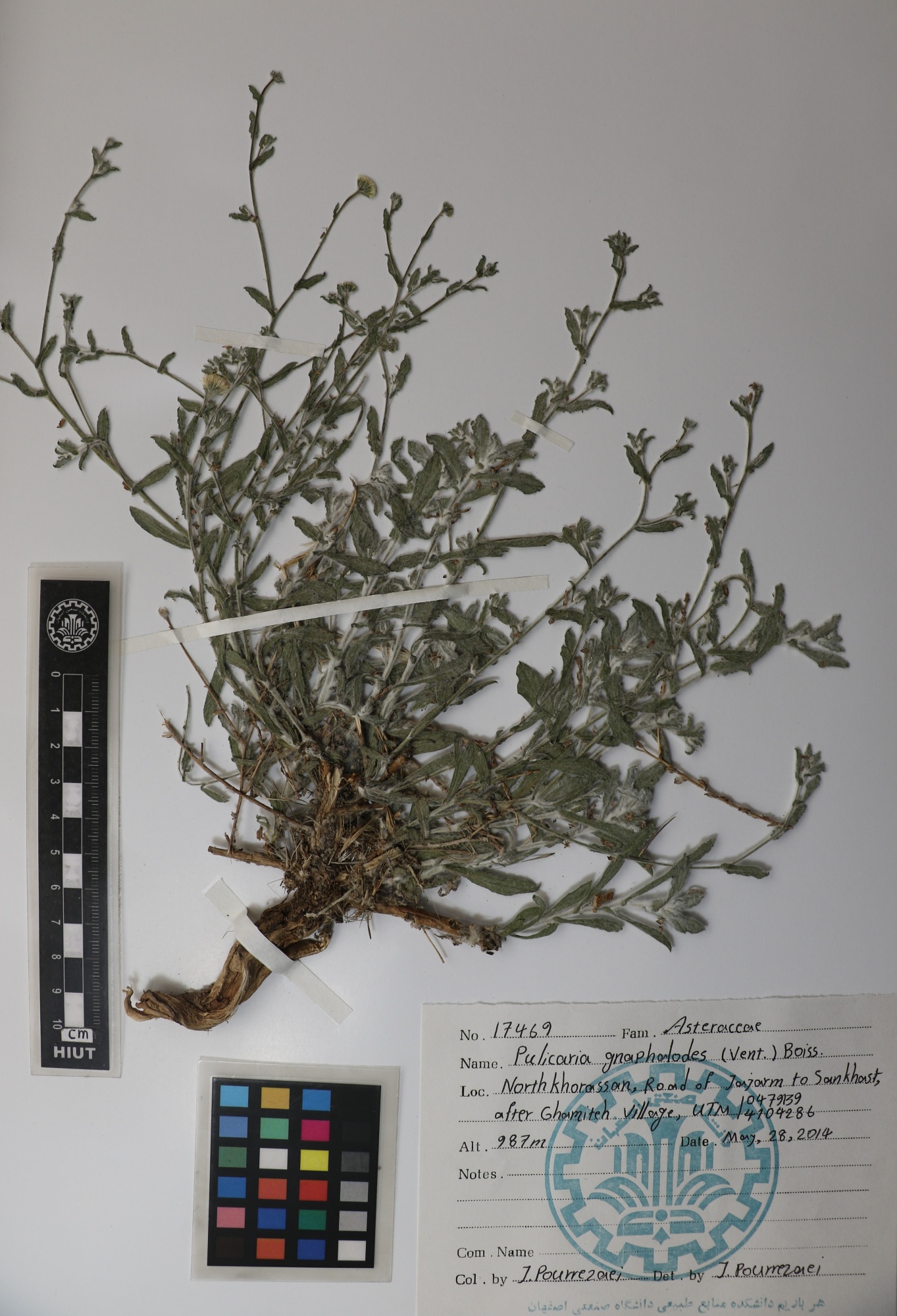 17469 Family : Asteraceae (Compositae) Herbarium Number : 17469 Species Name : pulicaria gnaphalodes (Vent}Boiss. herbarium date 3/28/2014 herbarium alternate 987m herbarium col by J.Pourrezaei herbarium det by Joharchi herbarium country Iran herbarium province North Khorasan herbarium location Road of Jajarm herbarium lat herbarium long herbarium annotations