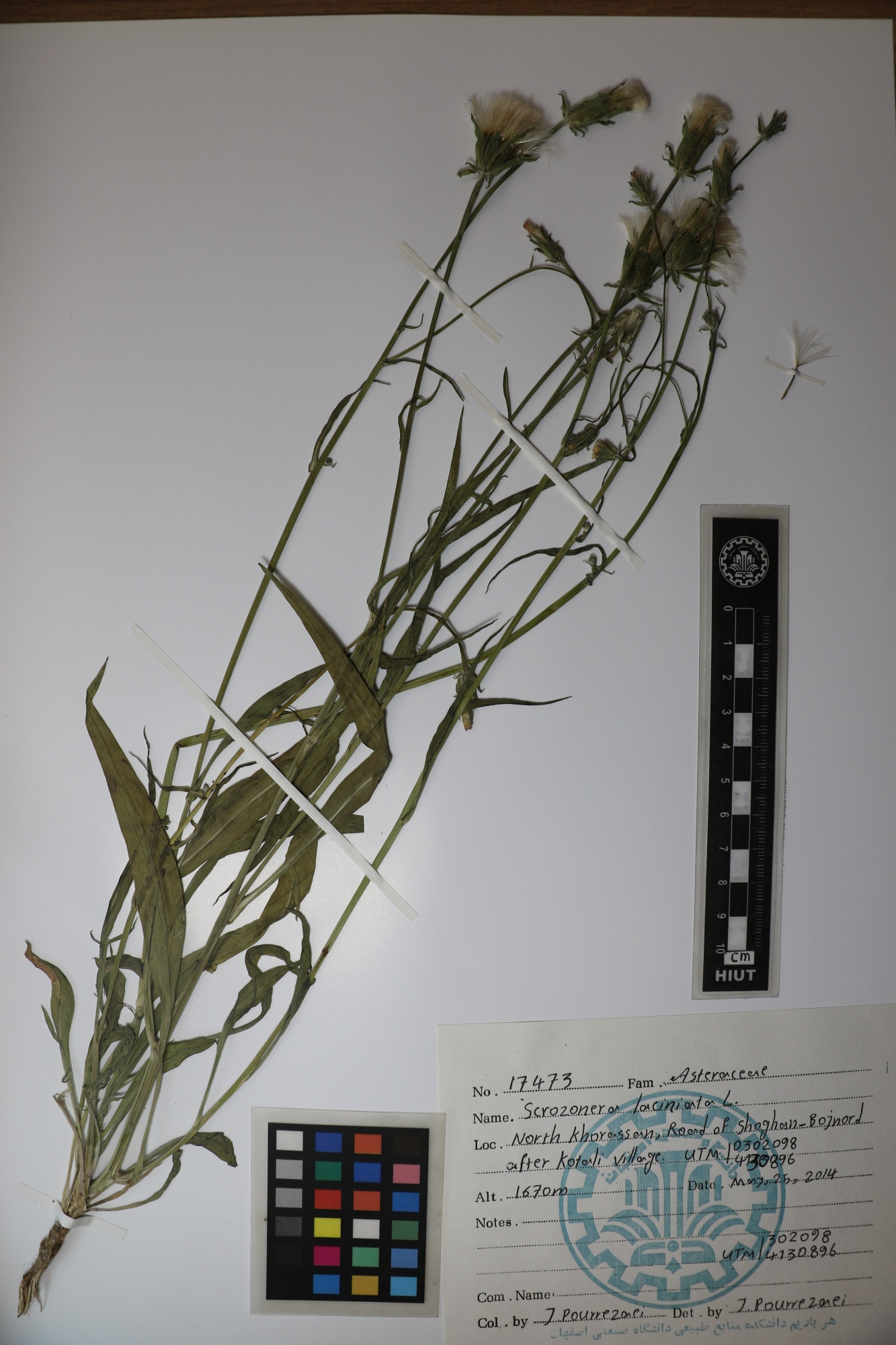 17473 Family : Asteraceae (Compositae) Herbarium Number : 17473 Species Name : Scrozonera laciniata L. herbarium date 3/25/2014 herbarium alternate 1670m herbarium col by J.Pourrezaei herbarium det by J.Pourrezaei herbarium country Iran herbarium province North Khorasan herbarium location Road of shoghan herbarium lat herbarium long herbarium annotations