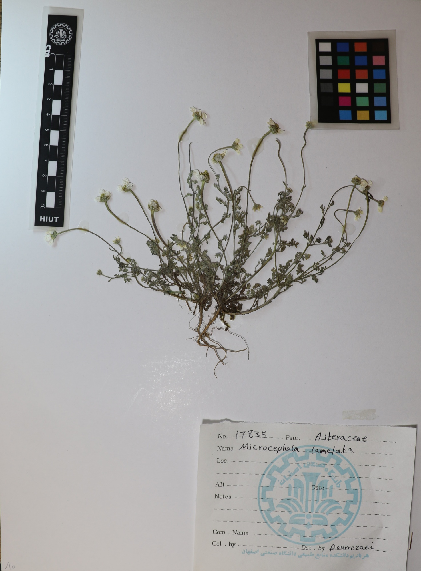17835 Family : Asteraceae (Compositae) Herbarium Number : 17835 Species Name : Microcephala lamelata herbarium date not inserted herbarium alternate herbarium col by J.Pourrezaei herbarium det by J.Pourrezaei herbarium country Iran herbarium province herbarium location not inserted herbarium lat herbarium long herbarium annotations