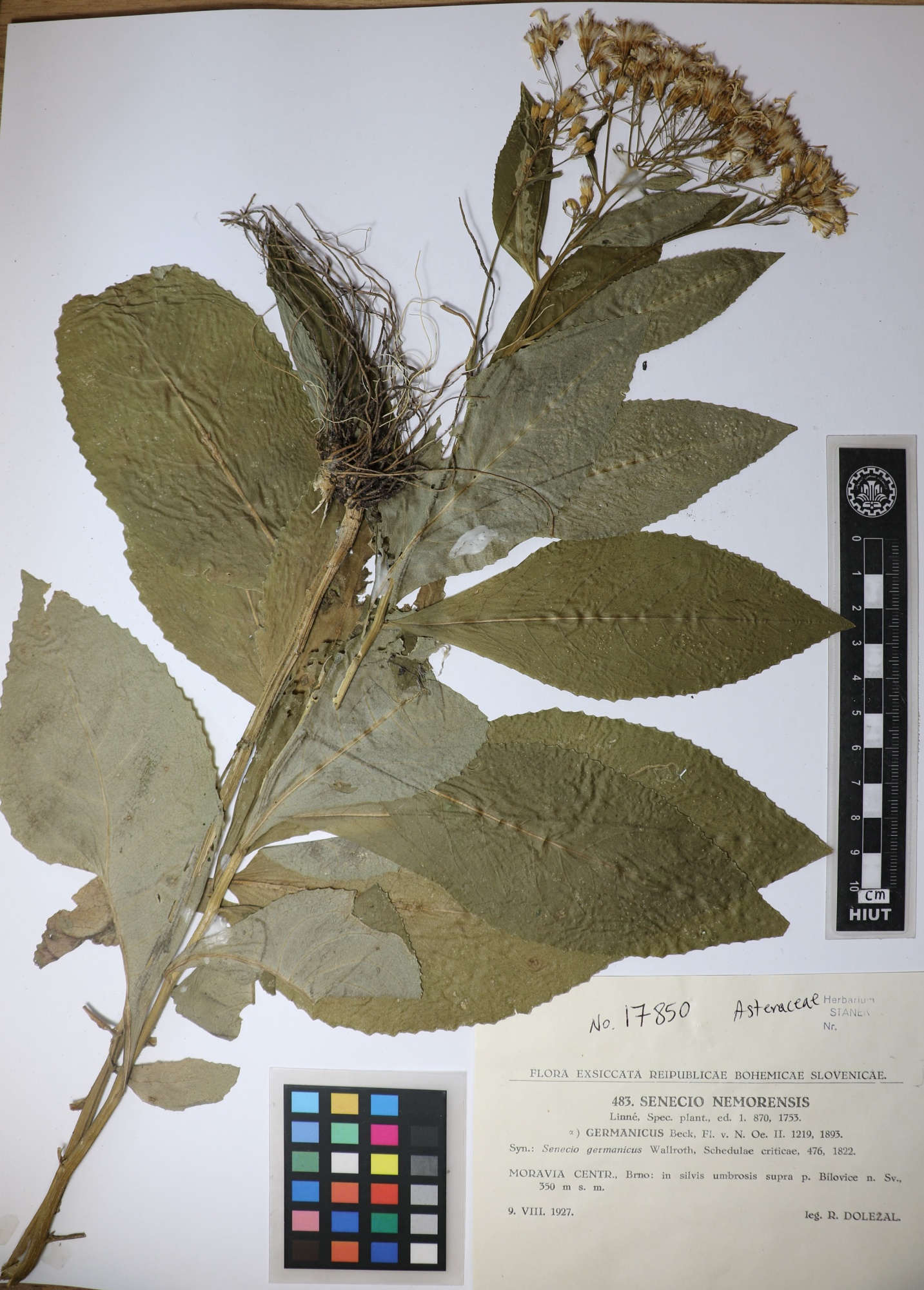 17850 Family : Asteraceae (Compositae) Herbarium Number : 17850 Species Name : Senecio nemorensis herbarium date not inserted herbarium alternate herbarium col by herbarium det by herbarium country Europe herbarium province herbarium location not inserted herbarium lat herbarium long herbarium annotations