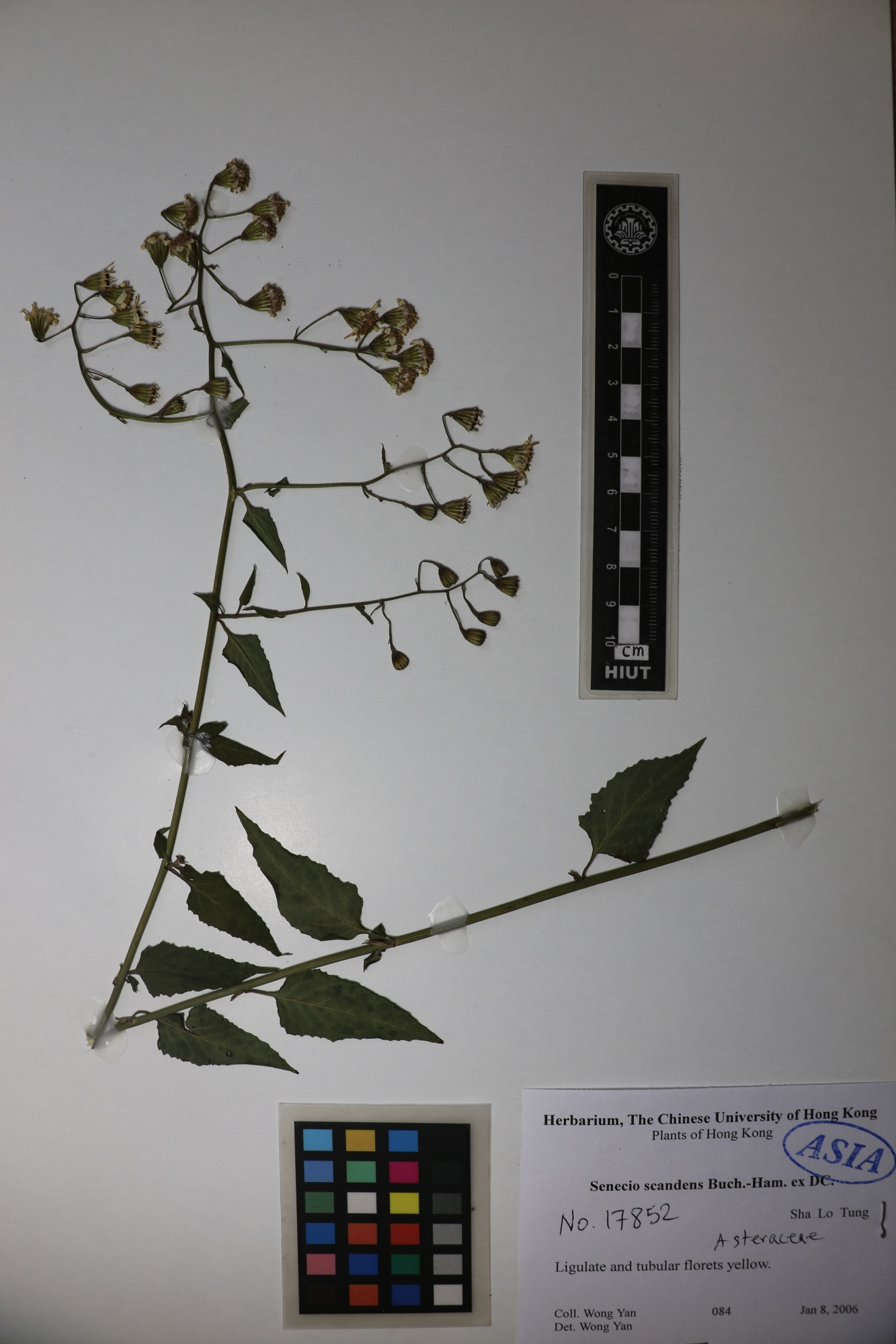 17852 Family : Asteraceae (Compositae) Herbarium Number : 17852 Species Name : Senecio scandens Buch._Ham.ex Dc. herbarium date 6/8/2006 herbarium alternate herbarium col by herbarium det by herbarium country Europe herbarium province herbarium location not inserted herbarium lat herbarium long herbarium annotations