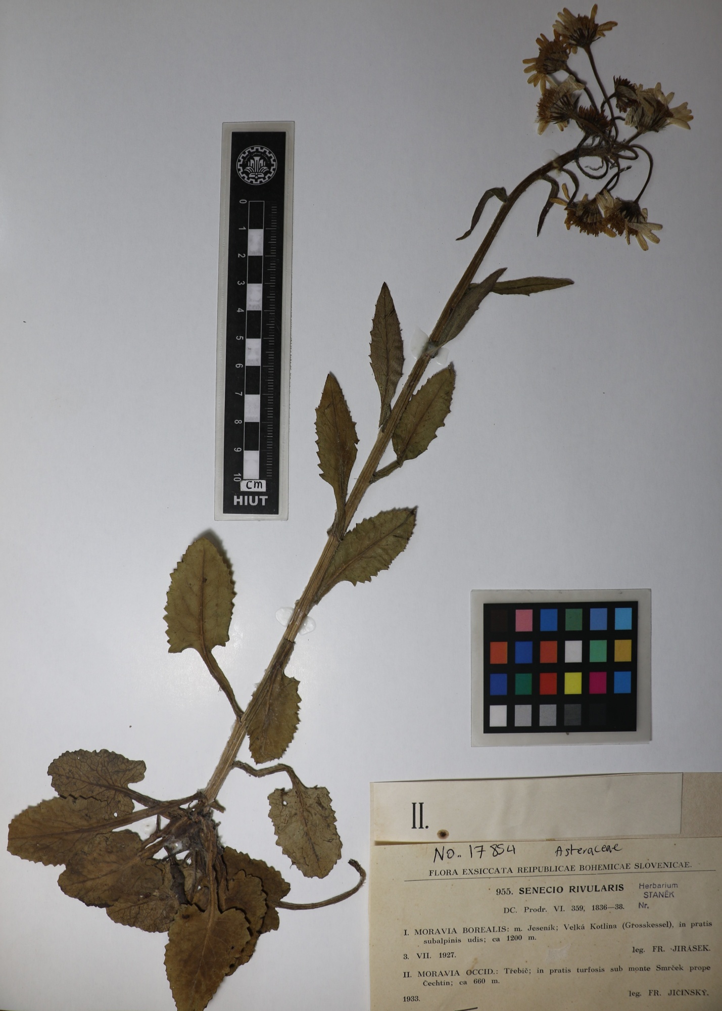 17854 Family : Asteraceae (Compositae) Herbarium Number : 17854 Species Name : Senecio rivularis herbarium date not inserted herbarium alternate herbarium col by herbarium det by Wong Yan herbarium country Europe herbarium province herbarium location not inserted herbarium lat herbarium long herbarium annotations