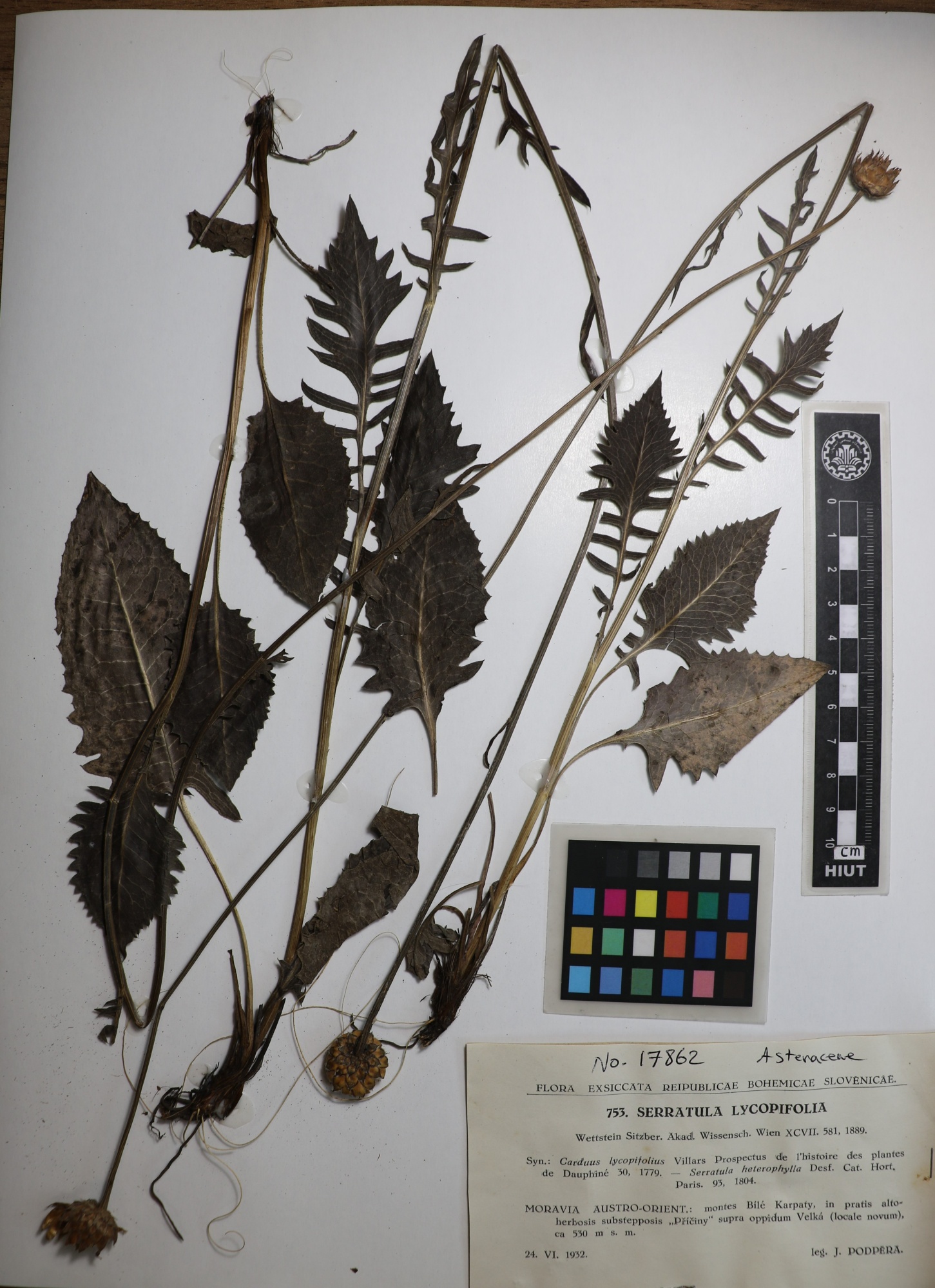 17862 Family : Asteraceae (Compositae) Herbarium Number : 17862 Species Name : Serratula lycopifolia herbarium date not inserted herbarium alternate herbarium col by S.J.Khajeddin herbarium det by herbarium country Europe herbarium province herbarium location not inserted herbarium lat herbarium long herbarium annotations