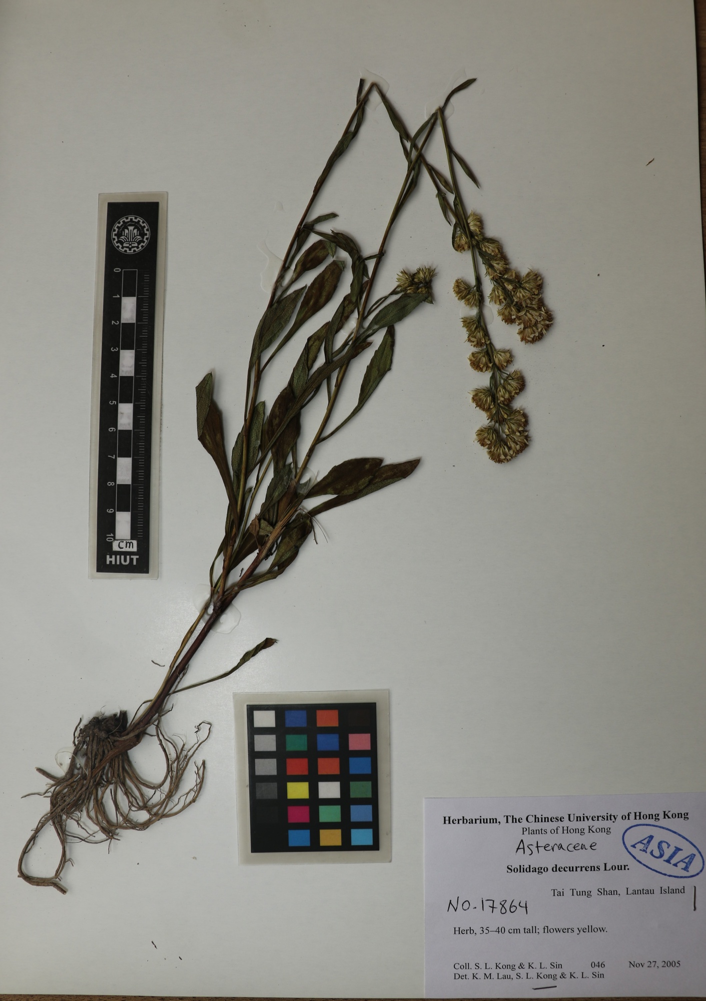 17864 Family : Asteraceae (Compositae) Herbarium Number : 17864 Species Name : Solidago decurrens Lour. herbarium date 11/27/2005 herbarium alternate herbarium col by herbarium det by herbarium country Asia herbarium province herbarium location not inserted herbarium lat herbarium long herbarium annotations