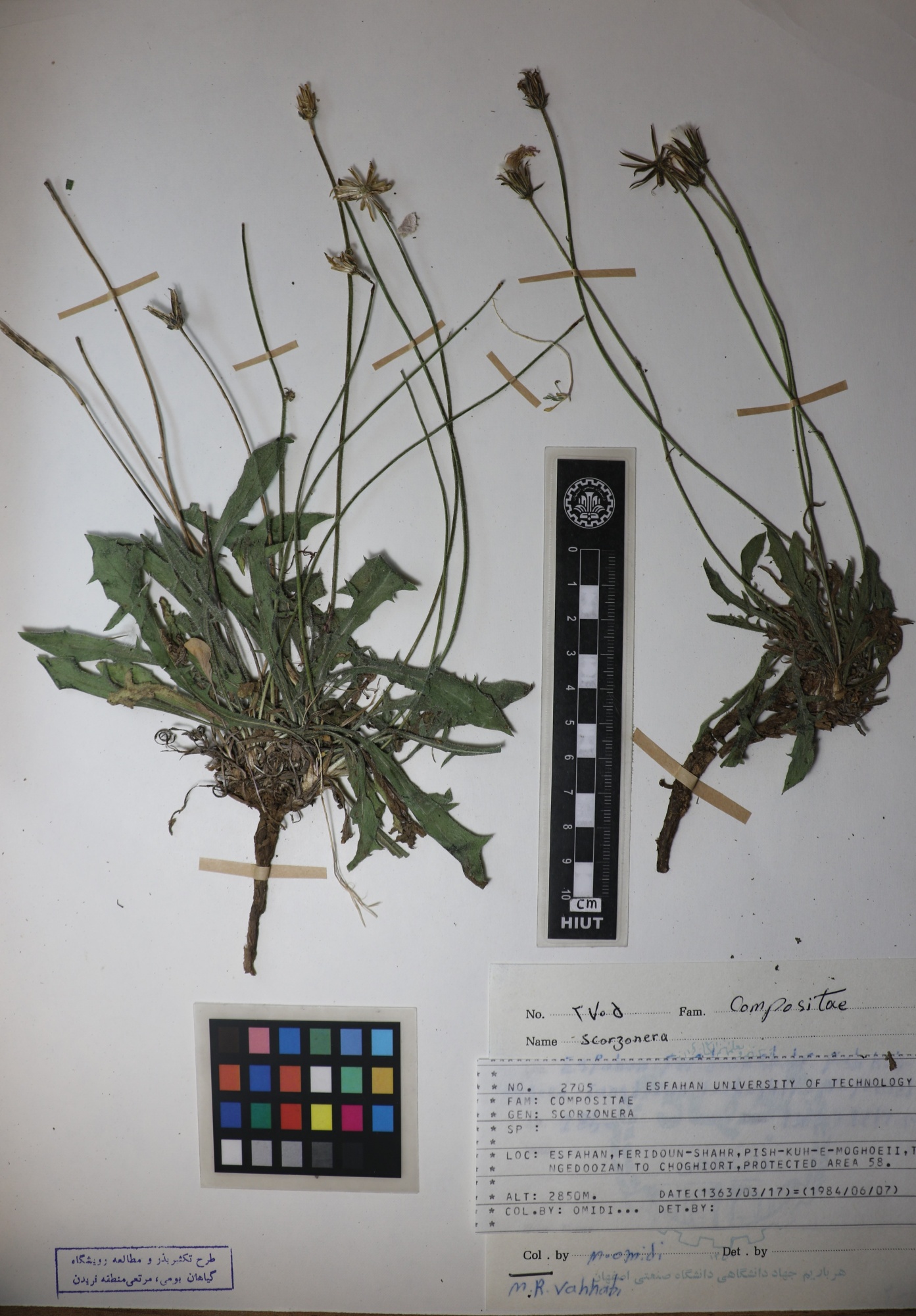 2705 Family : Asteraceae (Compositae) Herbarium Number : 2705 Species Name : Scorzonera herbarium date 6/7/1984 herbarium alternate 2850m herbarium col by M.Omidi herbarium det by V.Mozaffarian herbarium country Iran herbarium province Isfahan herbarium location Feridoun_Shahr herbarium lat herbarium long herbarium annotations