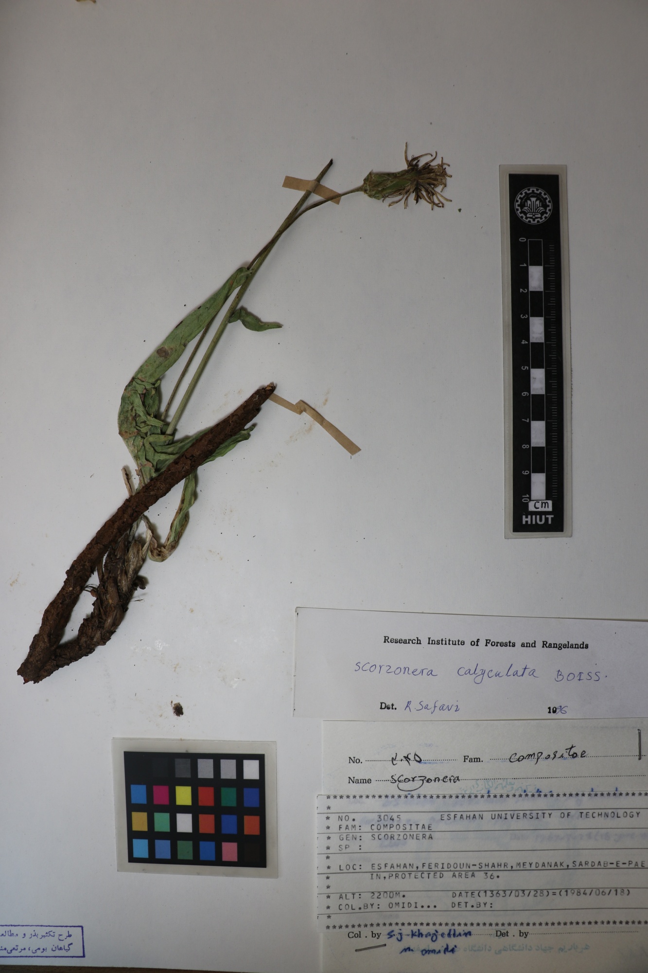 3045 Family : Asteraceae (Compositae) Herbarium Number : 3045 Species Name : Scorzonera calyculata herbarium date 6/18/1984 herbarium alternate 2200m herbarium col by M.R.Vahabi herbarium det by herbarium country Iran herbarium province Isfahan herbarium location Feridoun_Shahr herbarium lat herbarium long herbarium annotations