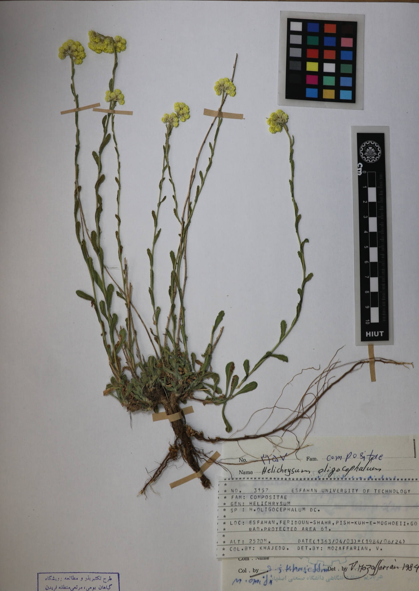 3157 Family : Asteraceae (Compositae) Herbarium Number : 3157 Species Name : Helichrysum oligocephalum Dc. herbarium date 6/24/1984 herbarium alternate 2520m herbarium col by S.J.Khajeddin herbarium det by herbarium country Iran herbarium province Isfahan herbarium location Feridoun_Shahr herbarium lat herbarium long herbarium annotations