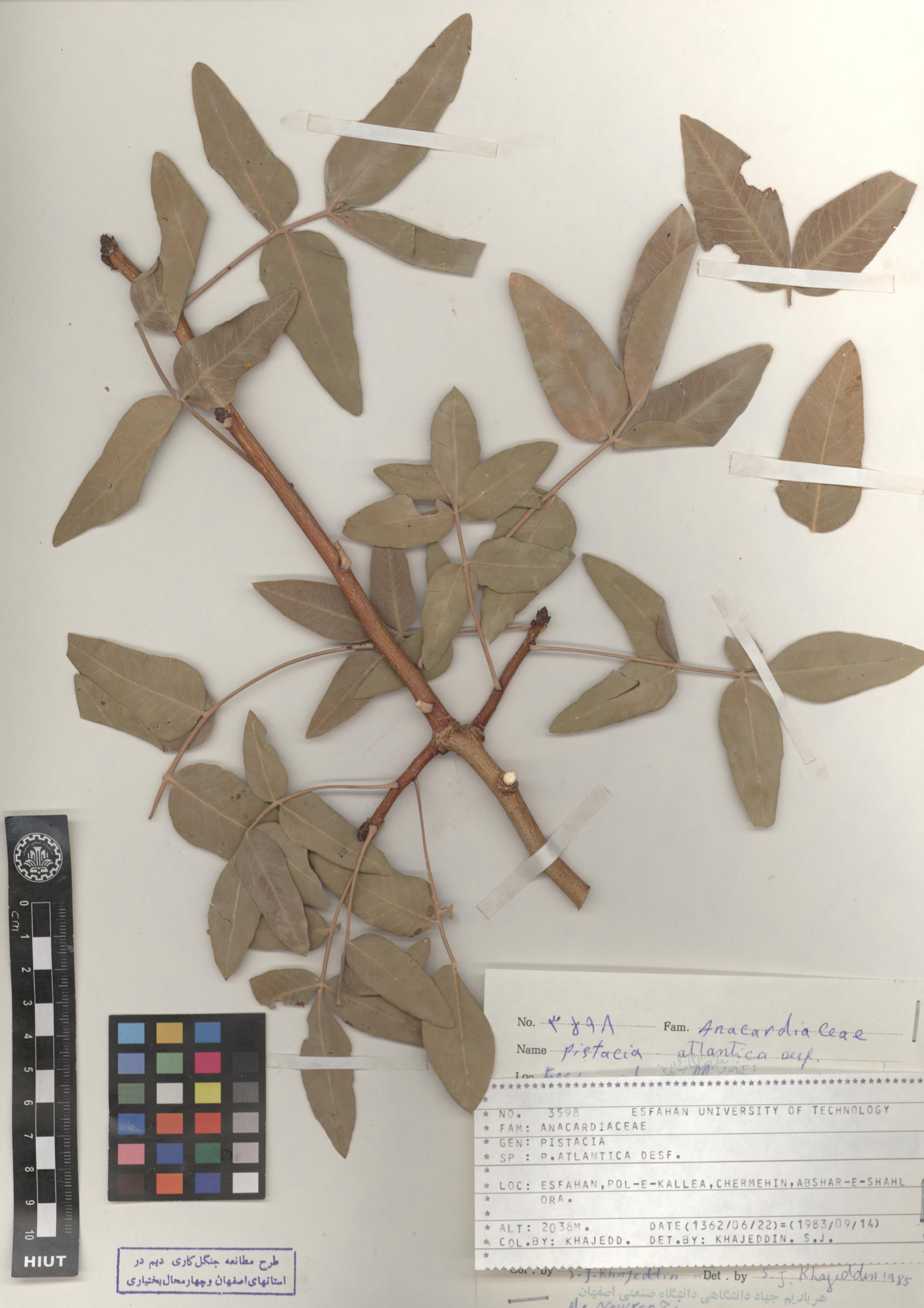 3598 Family : Anacardiaceae Herbarium Number : 3598 Species Name : Pistacia atlantica Desf. herbarium date 9/13/1983 herbarium alternate 2038m herbarium col by Khajeddin S.J. herbarium det by Khajeddin S.J. herbarium country Iran herbarium province Isfahan herbarium location Pol-E-Kallea, Chermehin herbarium lat herbarium long herbarium annotations