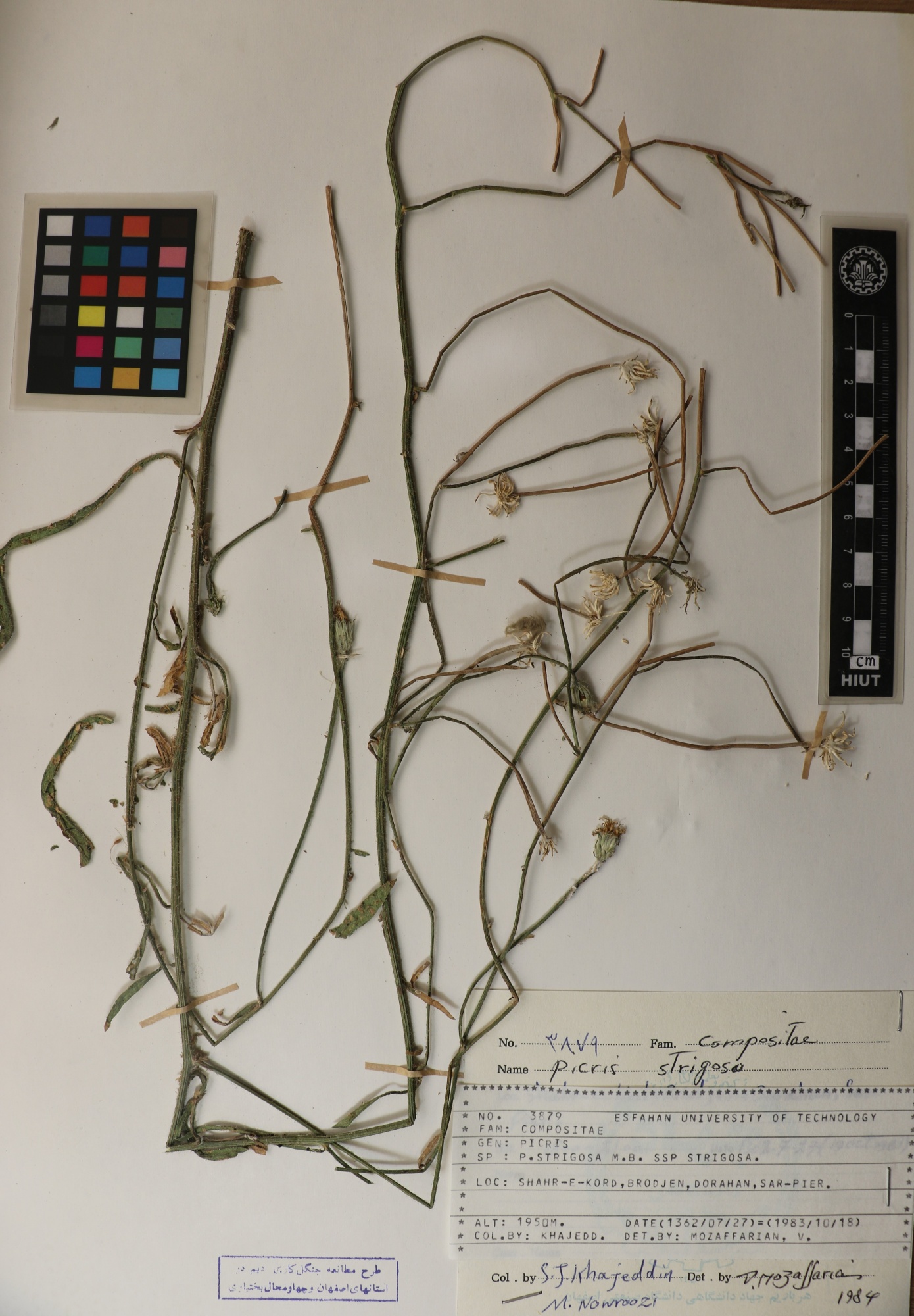 3879 Family : Asteraceae (Compositae) Herbarium Number : 3879 Species Name : Picris strigosa M.B.Ssp strigosa herbarium date 10/18/1983 herbarium alternate 1950m herbarium col by S.J.Khajeddin herbarium det by V.Mozaffarian herbarium country Iran herbarium province Isfahan herbarium location Shahrekord herbarium lat herbarium long herbarium annotations