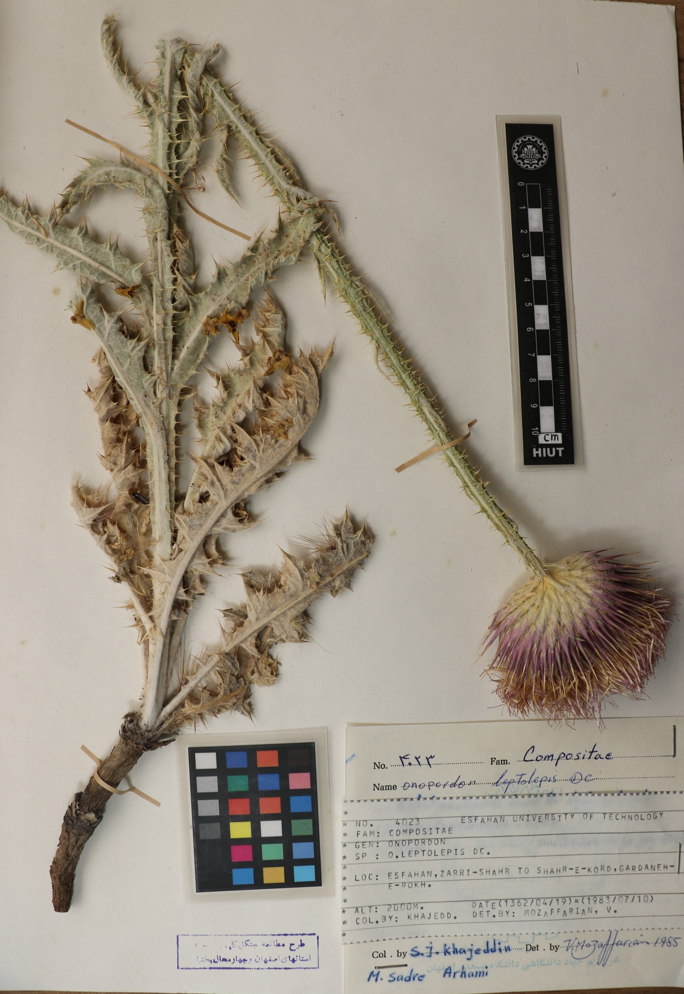 4023 Family : Asteraceae (Compositae) Herbarium Number : 4023 Species Name : Onopordon leptolepis C. herbarium date 7/10/1983 herbarium alternate 2000m herbarium col by S.J.Khajeddin herbarium det by herbarium country Iran herbarium province Isfahan herbarium location Zarri_Shahr herbarium lat herbarium long herbarium annotations