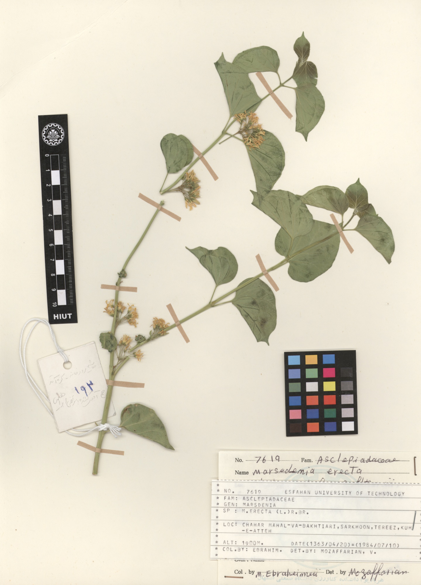 7619 Family : Apocynaceae Asclepiadaceae Herbarium Number : 7619 Species Name : Marsedenia erecta herbarium date 1363/04/20 herbarium alternate 1900m herbarium col by Ebrahimi M. herbarium det by Mozaffarian V. herbarium country Iran herbarium province Chaharmahal-Va-Bakhtiyari herbarium location Sarkhoon herbarium lat herbarium long herbarium annotations