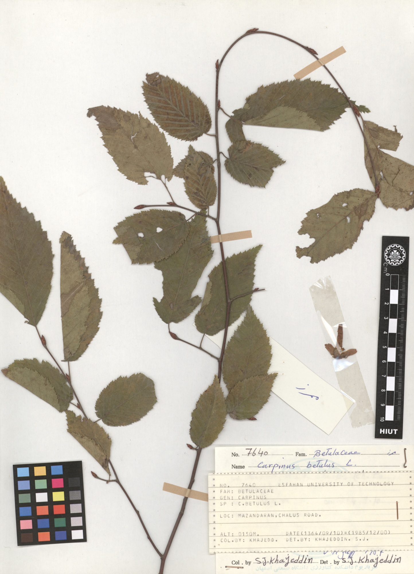 7640 Family : Betulaceae Herbarium Number : 7640 Species Name : Carpinus betulus herbarium date 1364/09/10 herbarium alternate 150m herbarium col by Khajeddin S.J. herbarium det by Mozaffarian V. herbarium country Iran herbarium province Mazandaran herbarium location Chalus road herbarium lat herbarium long herbarium annotations