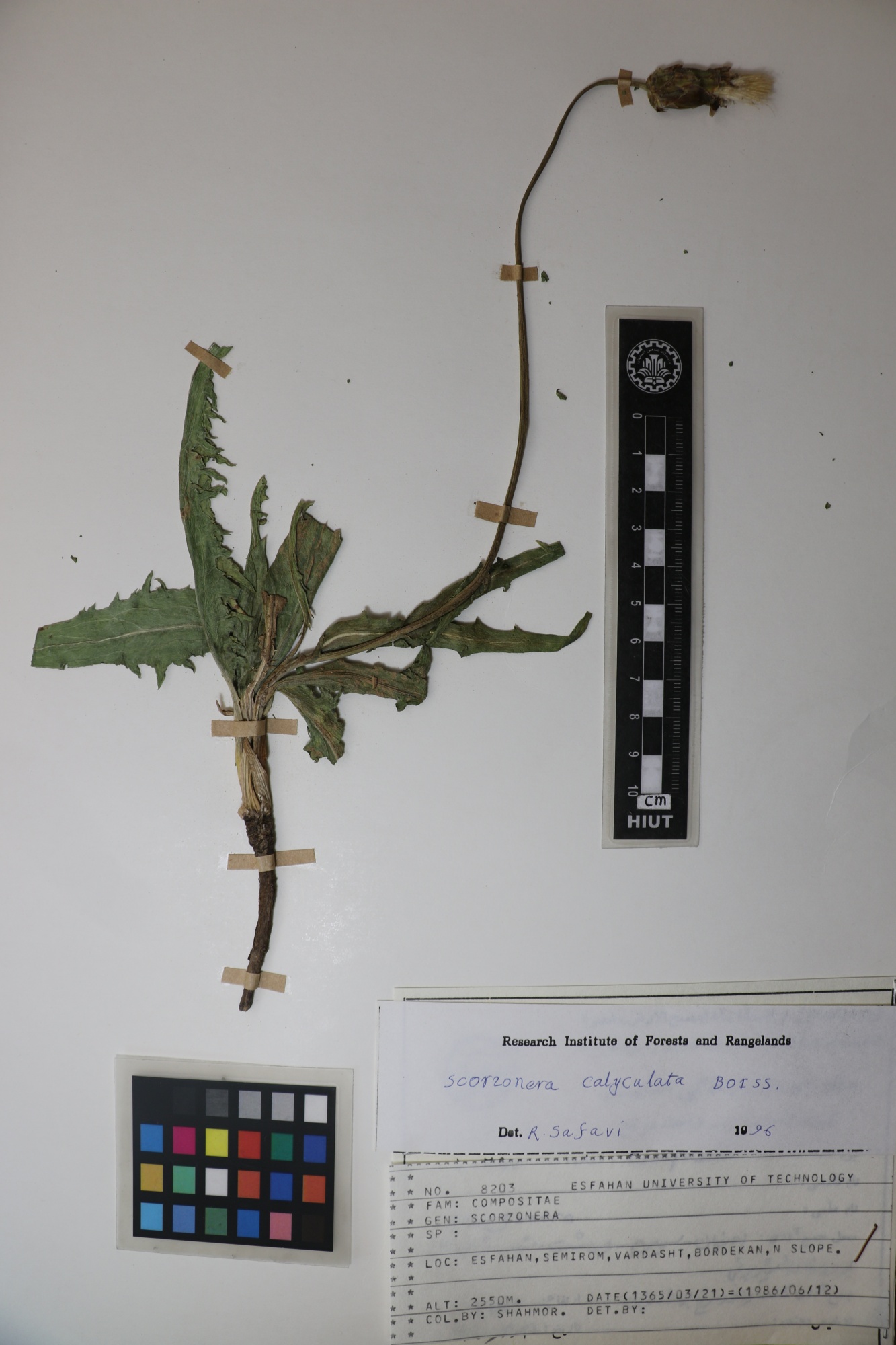 8203 Family : Asteraceae (Compositae) Herbarium Number : 8203 Species Name : Scorzonera calyculata Boiss. herbarium date 6/12/1986 herbarium alternate 2550m herbarium col by Shahmor herbarium det by S.J.Khajeddin herbarium country Iran herbarium province Isfahan herbarium location Semirom herbarium lat herbarium long herbarium annotations