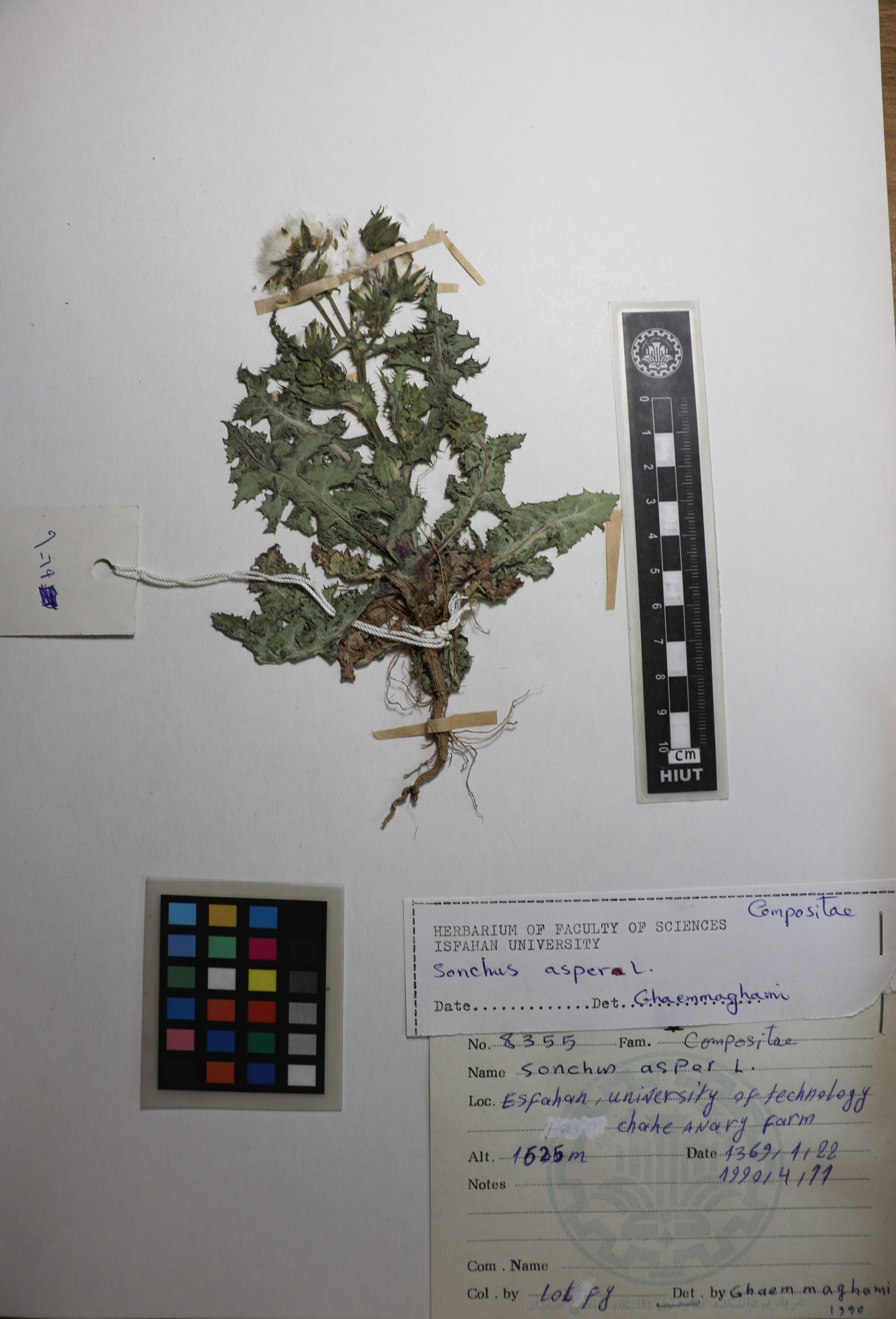 8355 Family : Asteraceae (Compositae) Herbarium Number : 8355 Species Name : Sonchus asper L. herbarium date 4/11/1990 herbarium alternate 1625m herbarium col by Lotfy.M.M herbarium det by herbarium country Iran herbarium province Isfahan herbarium location Isfahan university of technology herbarium lat herbarium long herbarium annotations