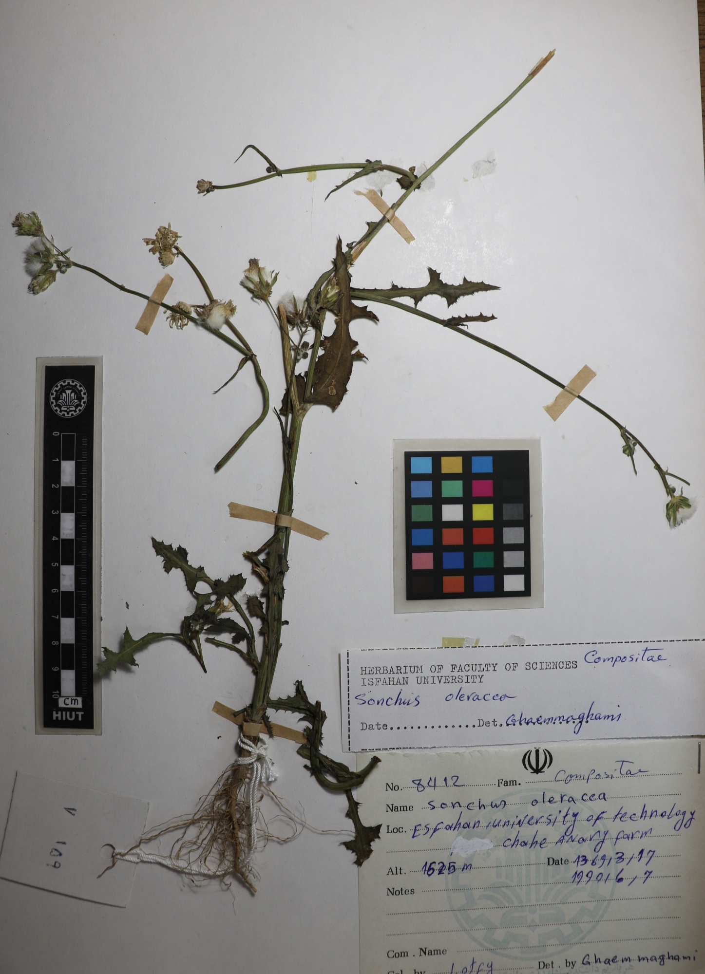 8412 Family : Asteraceae (Compositae) Herbarium Number : 8412 Species Name : Sonchus oleracea herbarium date 6/7/1990 herbarium alternate 1625m herbarium col by Lotfy.M.M herbarium det by herbarium country Iran herbarium province Isfahan herbarium location Isfahan university of technology herbarium lat herbarium long herbarium annotations
